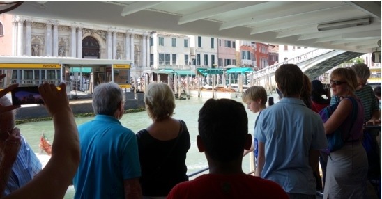 We bordered a ferry bound for San Marco to experience a ride up the Grand Canal,which resulted in a squishy, slow sojourn up the Canal. After disembarking, we made our way through the narrow winding streets and over bridges, our eyes agog at the beautiful Murano glass shops, the masks, the leather, the designer brands. We walked through San Marco Piazza, looked at the basilica (from the outside) and then headed off to find our accommodation, which was next door to the Scala Contarini del Bovolo (unfortunately this building is now closed to the public). We were shown to our room by a lovey older lady, We think she has transformed her family home into a guest house, keeping some of the rooms as her private quarters. We were greeted by a splendidly authentic Italian decorated bedroom, complete with all the stuff from years gone by, but more exciting was the fact that our room was on a canal, only one floor up, so we could each look out windows at the passing traffic below. We also had the luxury of a private bathroom, but we had to navigate from one end of the floor to the other to get to it!