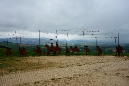 At the summit we were rewarded with the famous steel cut outs of a pilgrim scene, before descending down the other side. Unfortunately, at this point, my camera battery went flat!